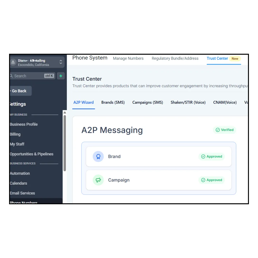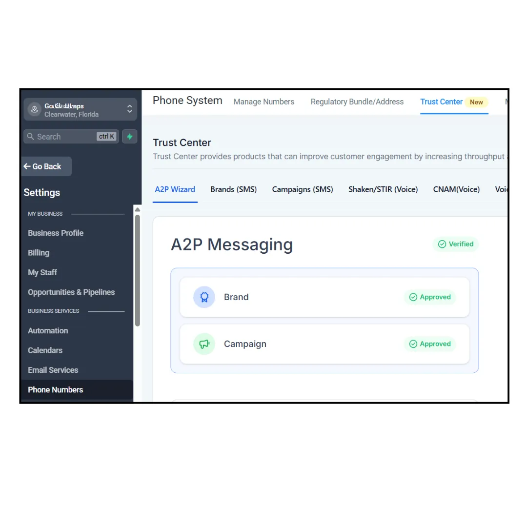 Successfully verified nearly 50 sub-accounts in GHL for compliant and effective messaging.